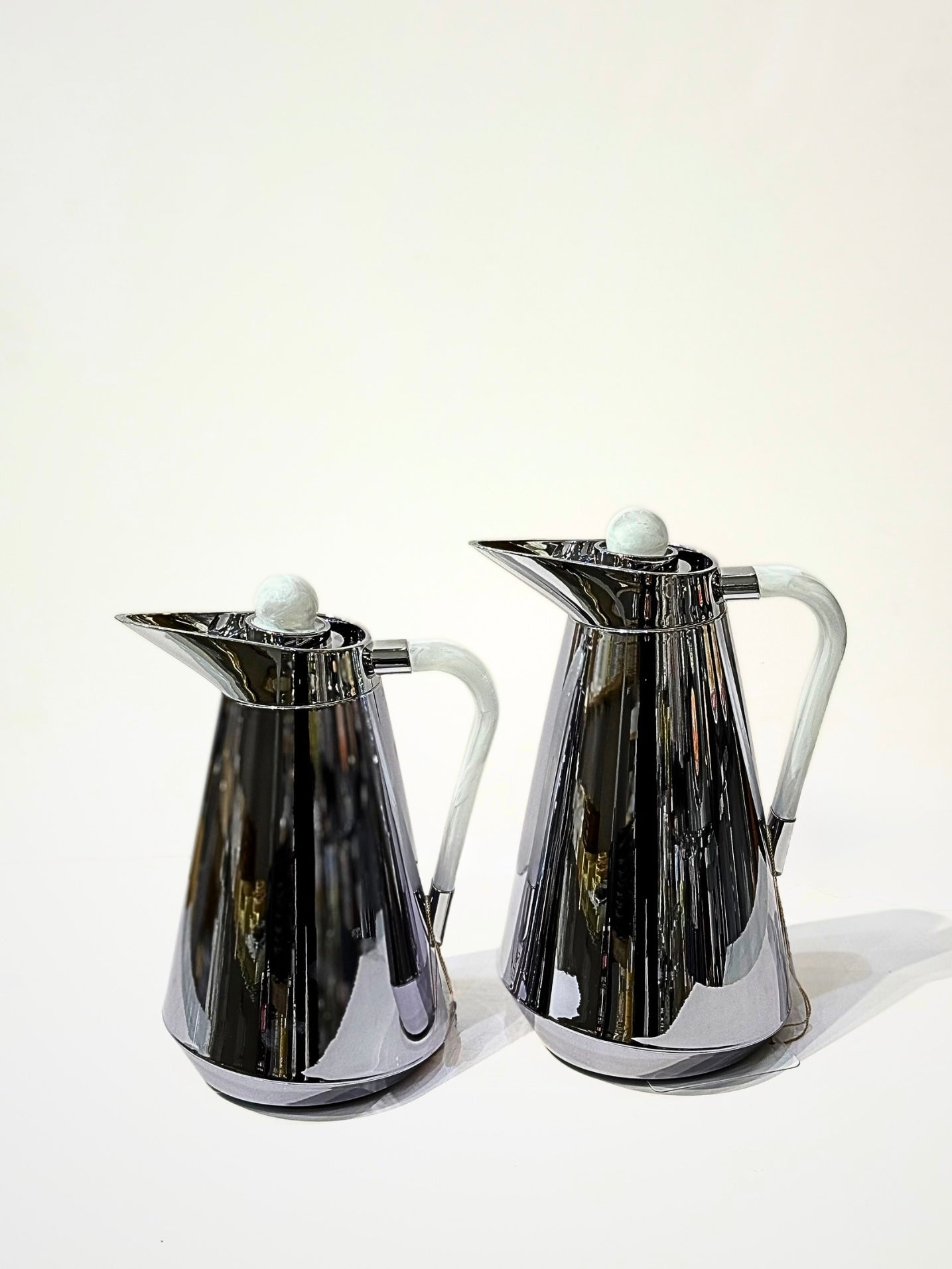 طقم دله شاي وقهوه فاخر يجمع بين الأناقة والعملية. يتميز بتصميم مزدوج الطبقات حيث الزجاج من الداخل يحافظ على نقاء المشروب، والستانلس ستيل من الخارج يوفر متانة وحماية فائقة. يشمل الطقم دلتين بمقاسات مختلفة: 1 لتر و700 لتر، مما يناسب احتياجاتك المتنوعة سواء لتقديم الشاي أو القهوة. مثالي للاستخدام اليومي والمناسبات الخاصة، يجمع بين الجودة العالية والأداء الموثوق