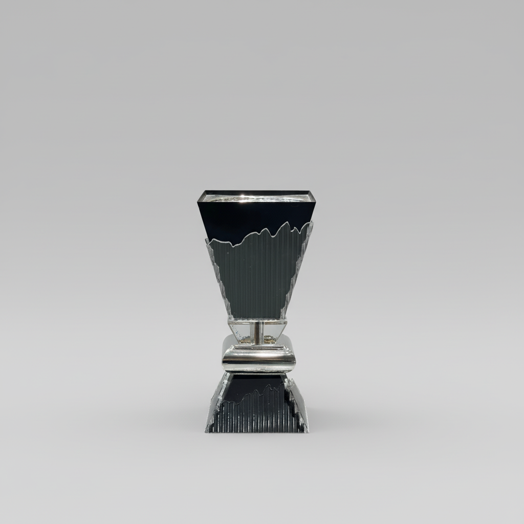 مصنوعة من ستانلس ستيل بدرجات فضية داكنة مع تشطيب عاكس يبرز الخطوط المتكسّرة في الجسم، لتبدو كقطعة ديكور فنية حتى وهي مطفأة.